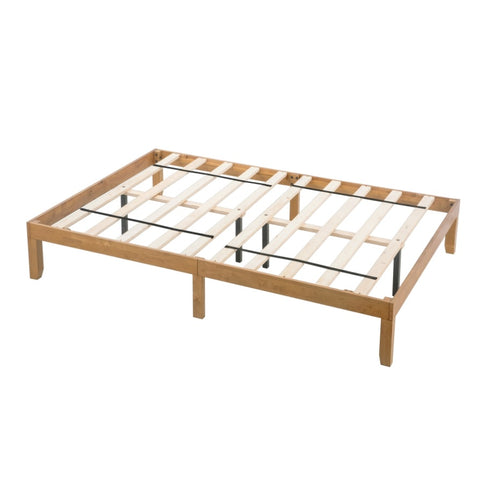 This Queen size Solid Wood Platform Bed is beautifully simple and works well with any style of home décor. This Platform Bed is supportive and stylish and comes with 10 Slats - NO Box Spring Required. Durable Solid Wood Construction: This Queen size Platform Bed Frame is made with real solid wood for stability and durability No Box Spring Needed: Crafted from solid wooden slats, that's no box spring required for this platform bed 4 Center Supportive Legs: With 4 center supportive legs, this sturdy platform bed supports a maximum weight capacity of 650 lbs ~ 700 lbs Simply elegant and durable design not meant for use with a headboard or footboard Easy to Assemble: All tools needed to assemble are provided.