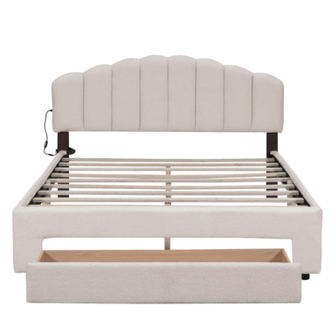 Teddy Fleece Queen Size Upholstered Platform Bed with Drawer, Beige WF309187AAA