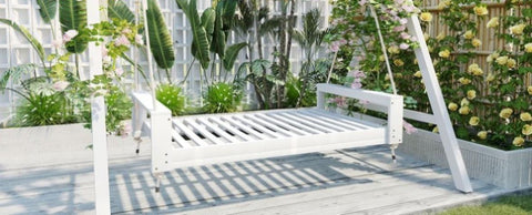 | Summary | Transform your outdoor space with this elegant Porch Swing Bed, crafted from durable acacia wood for lasting beauty. Designed to fit a twin-size mattress, it features four 98-inch hemp ropes and two secure rope clips, ensuring a safe and stylish lounging experience. With a 400lbs weight capacity and four stunning color options, this swing bed adds charm to any patio, porch, or garden. Perfect for lazy afternoons, reading, or simply unwinding in the fresh air. |