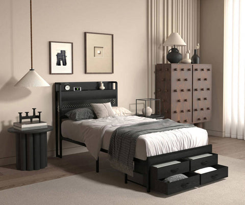 Maximize Your Space: With four under-bed drawers, this single bed frame is a storage magician! Our bed frame with storage provides ample organization for bedding, clothing and personal items. Say goodbye to clutter and hello to smart storage solutions that enhance your bedroom efficiency.