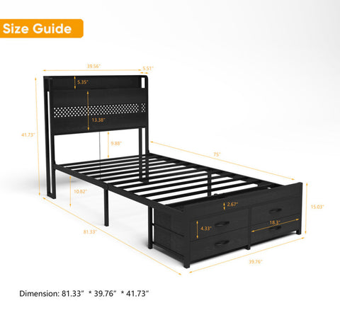 Twin Bed Frames with Headboard, Twin Size Bed Frames with Storage Drawers, Twin Bed, Black Metal W2129P262895