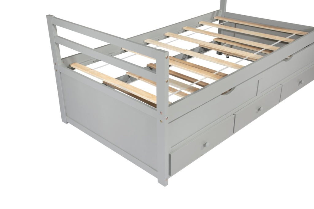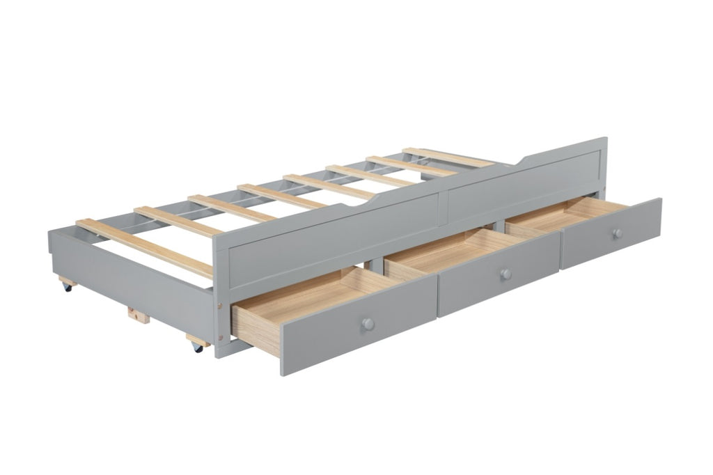 Twin Size Bed with Headboard, Footboard, Trundle and Three Storage Drawers