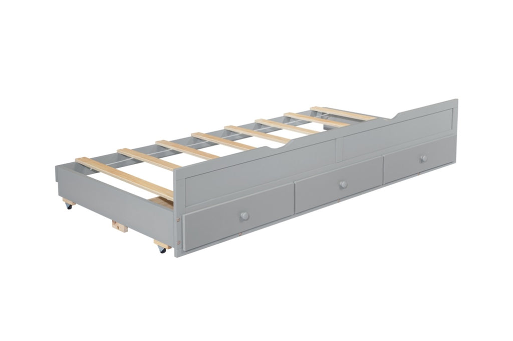 Twin Size Bed Headboard, Footboard, Trundle and Three Storage Drawers, Twin Size Pine Wood Bed W504P197161