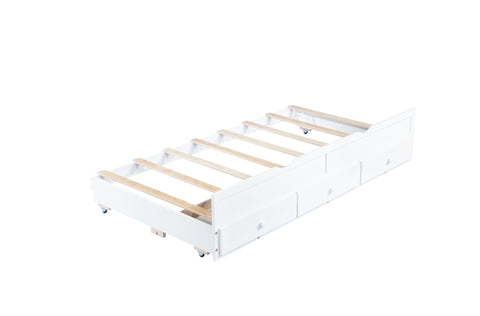 Twin Size Bed Headboard, Footboard, Trundle and Three Storage Drawers, Twin Size Pine Wood Bed W504P197162