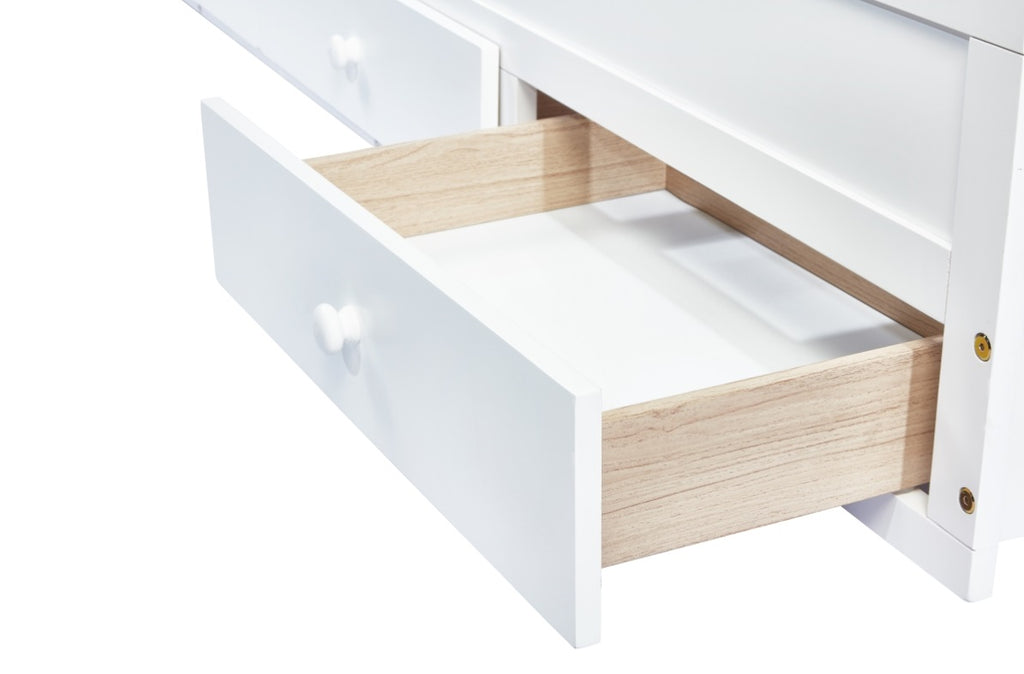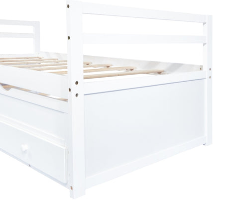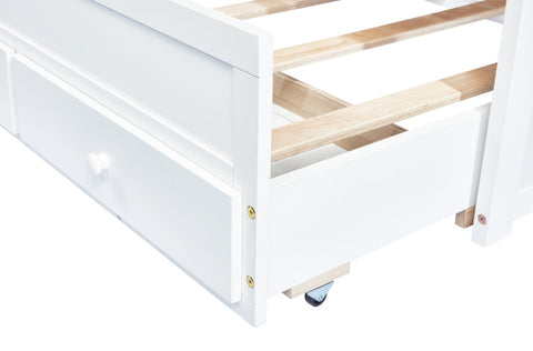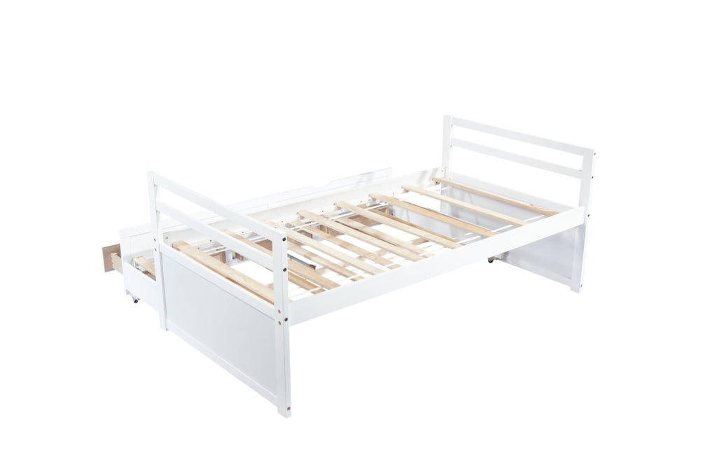 Not sure how to maximize space in a small bedroom This twin bed with trundle and storage drawers is the perfect charming piece for every home. The space-optimizing design will unleash your bedroom’s true space potential and open up more room for an extension of other furniture and décor. In addition, this twin bed comes with classically-designed headboard and footboard to ensure the comfort and sound sleep.