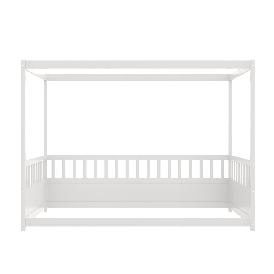 Twin Size Canopy Bed Frame with Guardrails for Kids,Floor Bed Twin with Four Poster Design,Kids W1858P252838