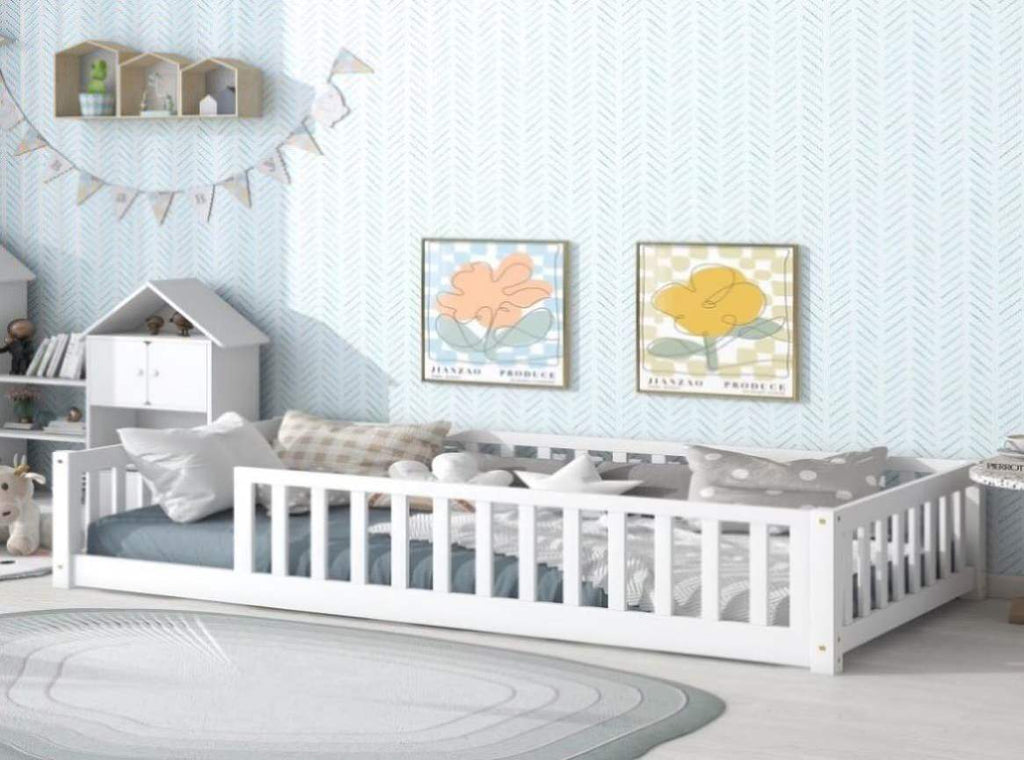 [Perfect for Transition Period] The floor bed facilitates the transition from co-sleeping to an independent sleeping environment, thereby fostering children's autonomy. The fence-enclosed design promotes exploration and freedom within their personal space.