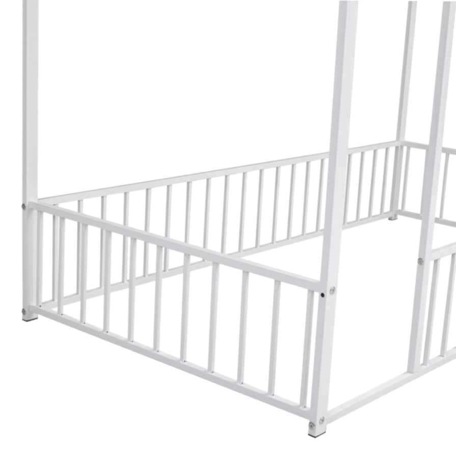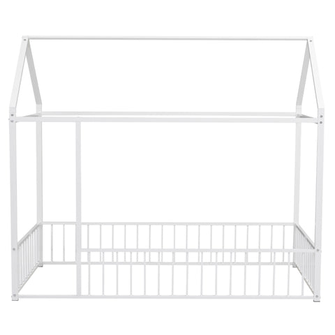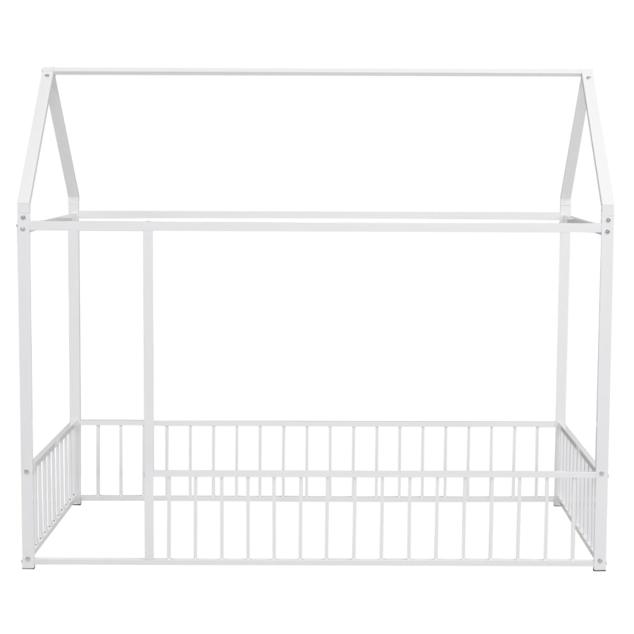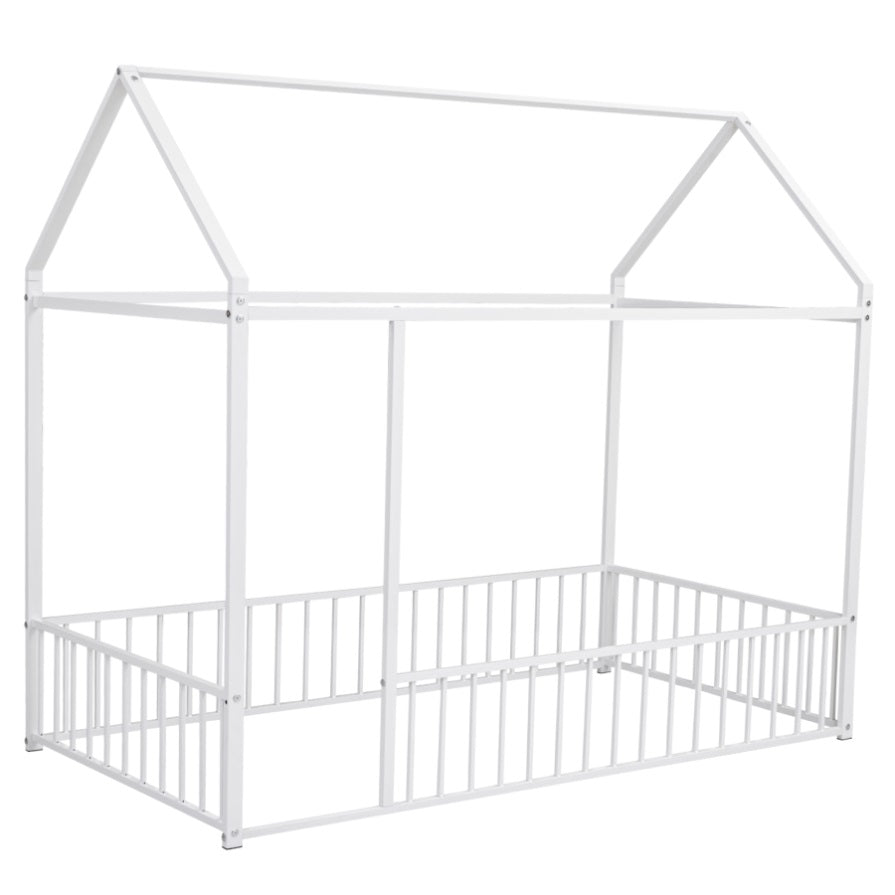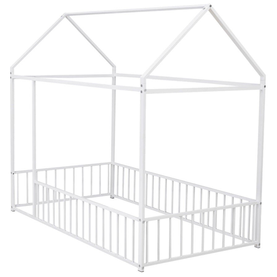 Twin Size Metal Bed House Bed Frame with Fence, for Kids, Teens, Girls, Boys, White MF304315AAK
