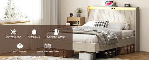 Bed frame twin size with a padded upholstered headboard, suitable for various decors; EVA mute bar prevents noise from friction, no squeaking or creaking
