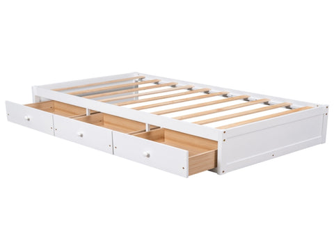 Twin Size Platform Storage Bed with 3 Drawers,White WF193634AAK