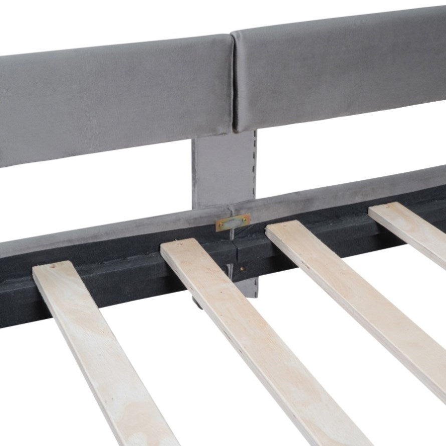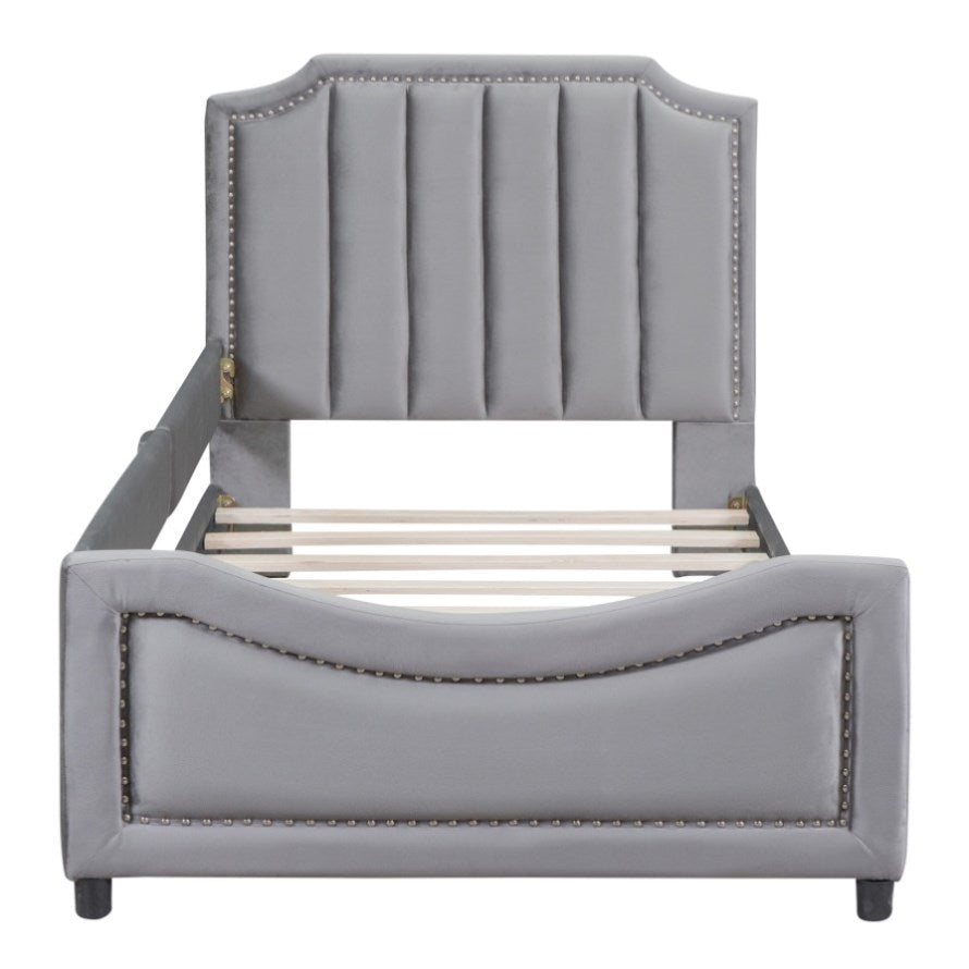 Twin Size Upholstered Daybed with Classic Stripe Shaped Headboard, Gray WF308905AAE