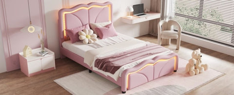 Twin Size Upholstered Platform Bed with Curve Shaped and Height-adjustbale Headboard,LED Light WF323748AAH