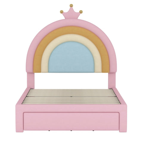 Upholstered Rainbow Design Bed ,Velvet Princess Platform Bed with Storage Drawer