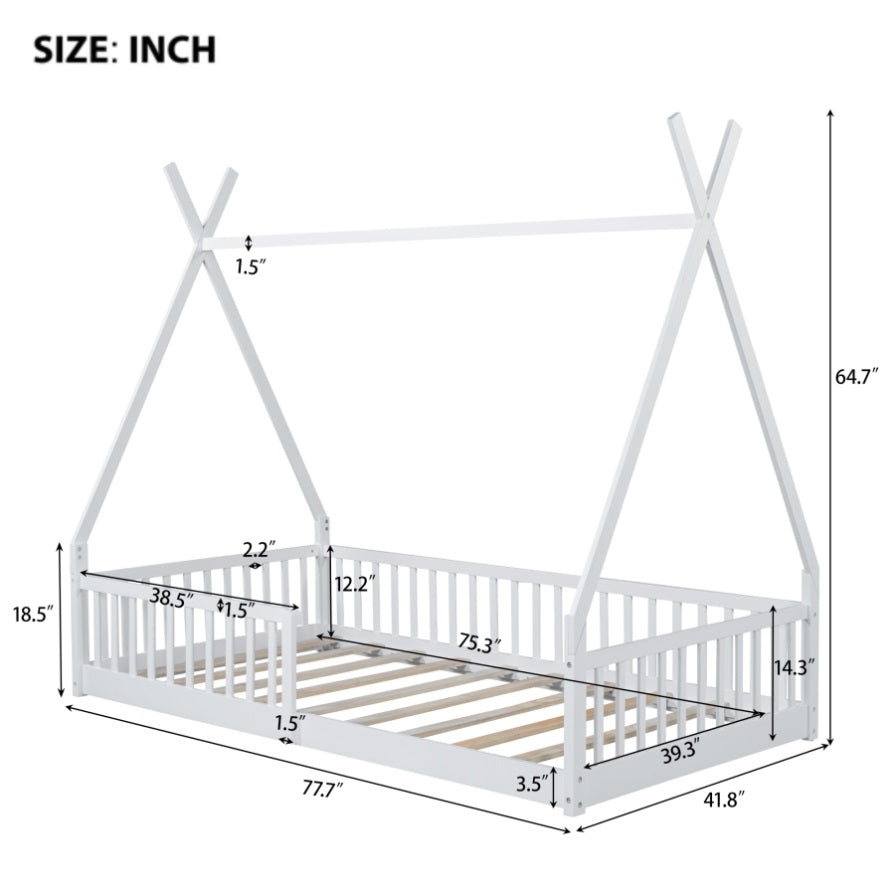 [Solid Construction] The house platform bed crafted from high-quality solid pine wood can last for long time use. The roof and fence are made from MDF boards, ensuring strong stability and durability.