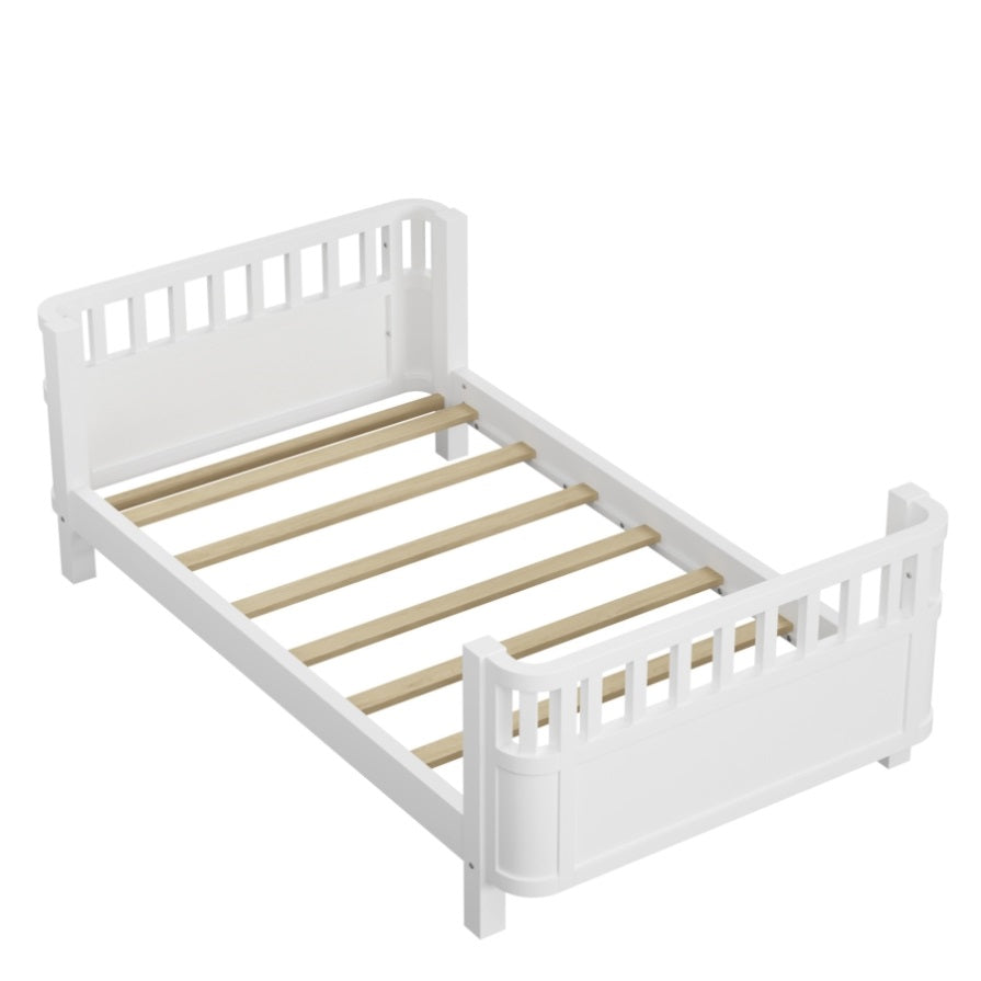 This twin platform bed featuring fence with headboard, footboard and side to increase the safety. With 2.8 inch gap in each fence effectively preventing pinch hazard.