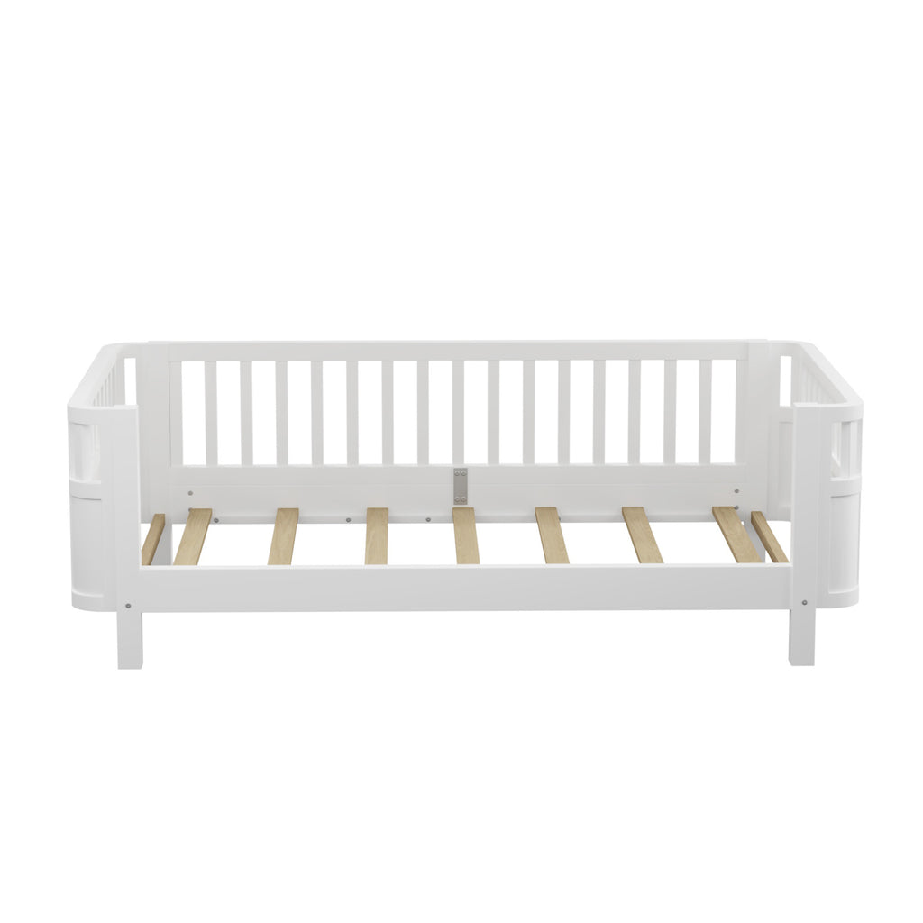 The kids bed come with different use, can place the side without rails against the wall which suitable for little kids. You can also use it as a daybed or place at side of mother ‘s bed which more convenience for mother to take care kids. Besides, the right side rails of the bed can be taken off when no need. This design meet your growing child’s changing needs.