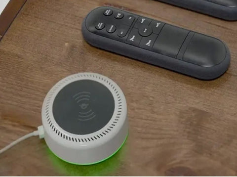 One voice-activated remotes with flashlight and voice-activated speaker with wireless phone charging