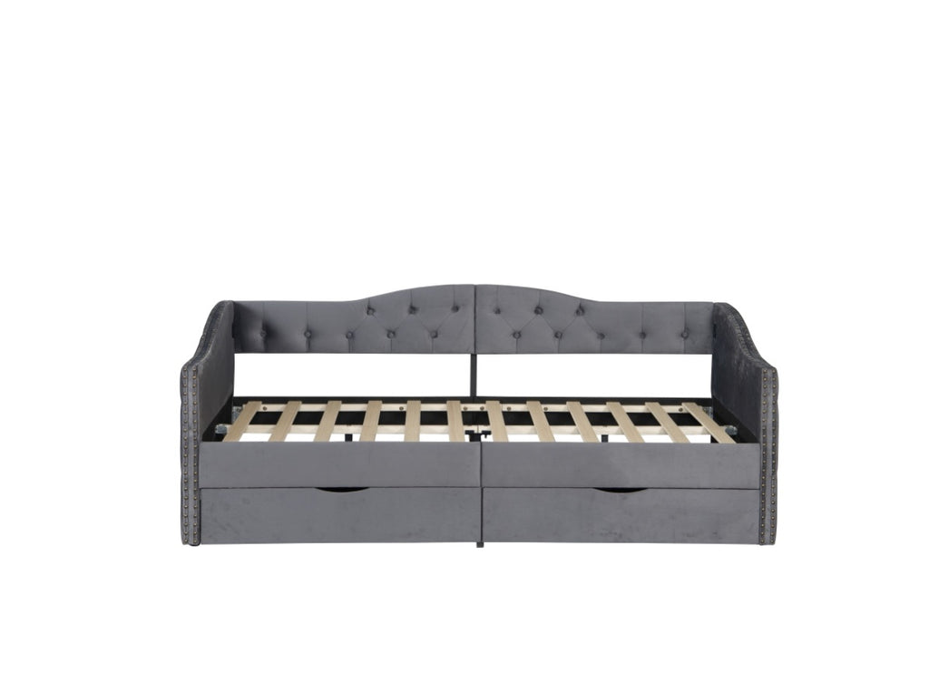 Upholstered Daybed with Storage Drawers, Wood Daybed Twin Size, No Box Spring Needed, Grey W1670P255474
