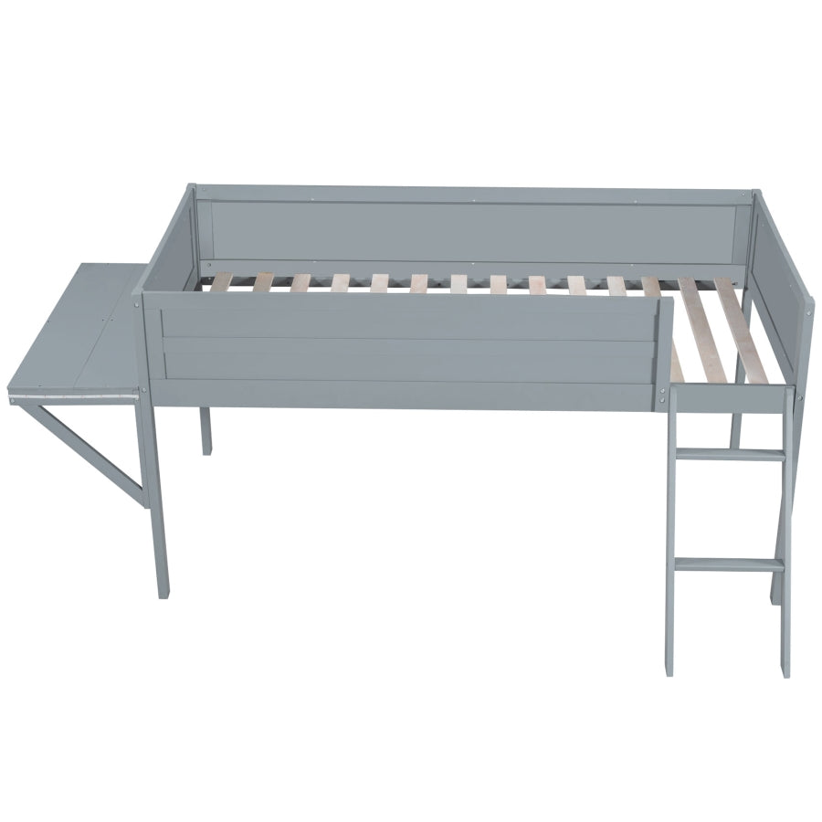 Wood Twin Size Gaming Loft Bed with Desk and LED, Grey