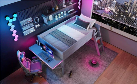 A gaming bed, desk and storage built into one. This loft gaming bed collection provides the perfect space saving solution for any kids bedroom.