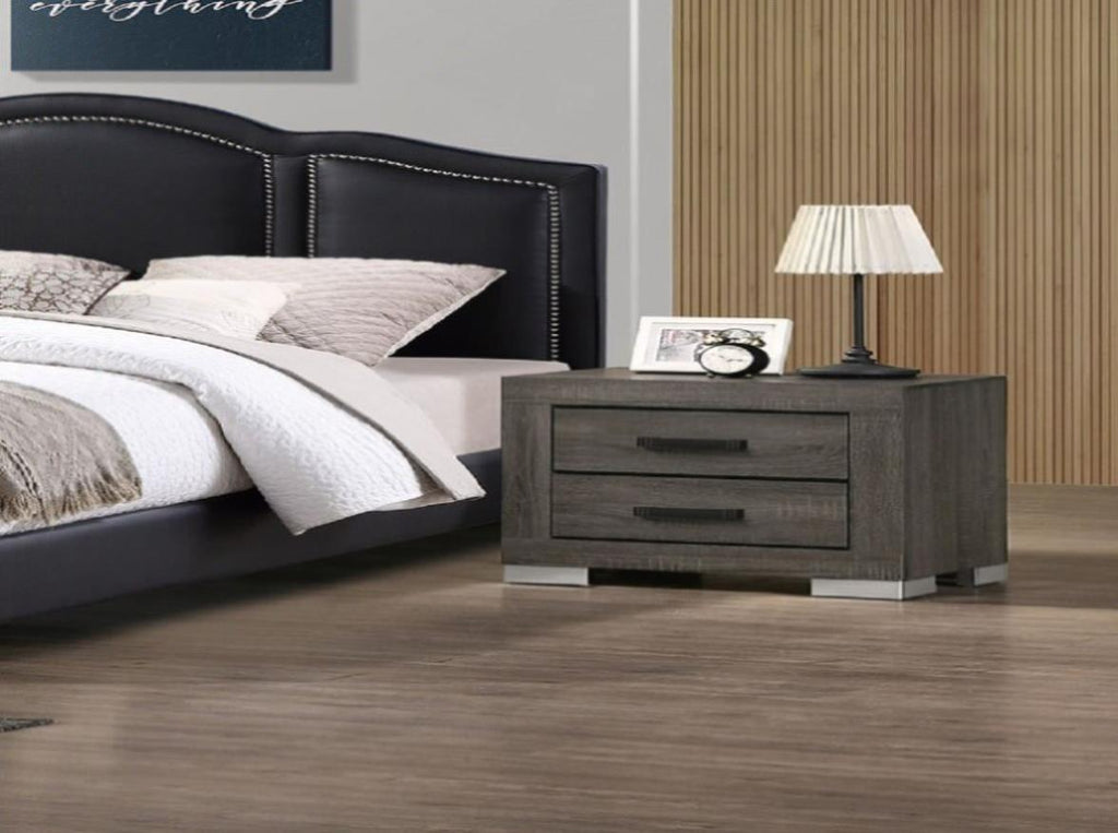 2 Drawers Wood Nightstand With Black Handles In Foil Grey SR015491