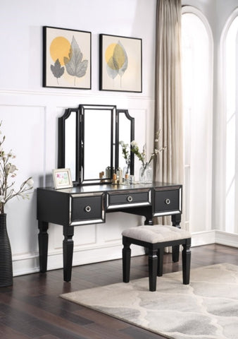 Luxurious Majestic Classic Black Color Vanity w Stool 3- Storage Drawers 1pc Bedroom Furniture B011111849