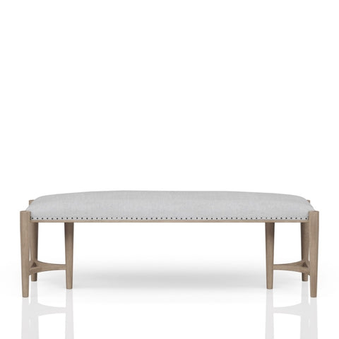 1pc Driftwood Finish Standard Height Bench Gray White Fabric Upholstered Seat Cushion Tapered Legs B011P184617