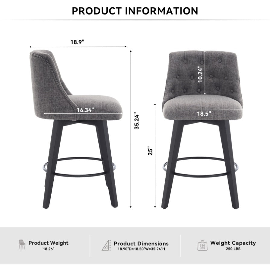 007-25" Swivel Bar Stools Set of 2-Modern Counter Height Stools with Linen Upholstery&Button Tufted W2636P242117