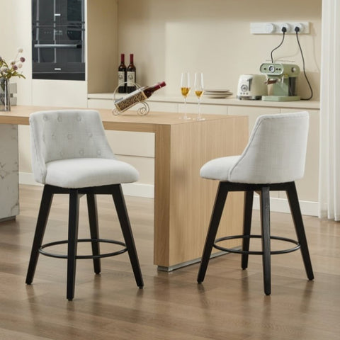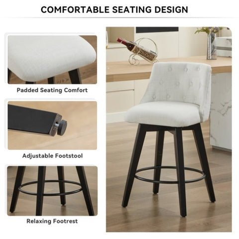 007-Swivel Counter Chairs, Modern Linen Fabric with Button-Tufted Backrest, Stylish Bar Stools, Set W2636P242111