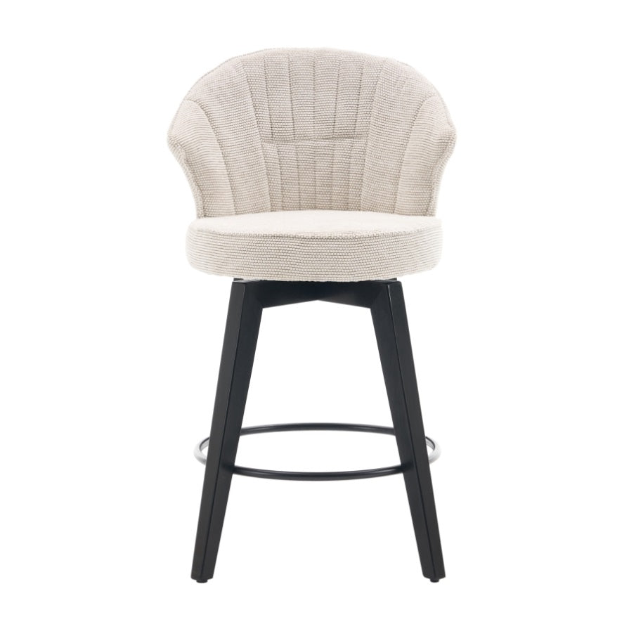 008-Set of 2 Counter Height Swivel Bar Stools, Chenille Upholstered Chairs with Wide Backrest for W2636P239835