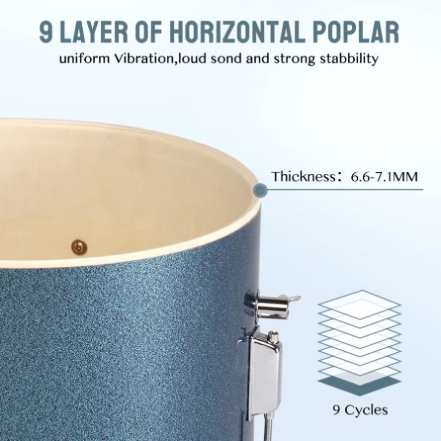 - The drum shell is made of horizontal-grained poplar wood, with high strength, uniform vibration and loud sound.