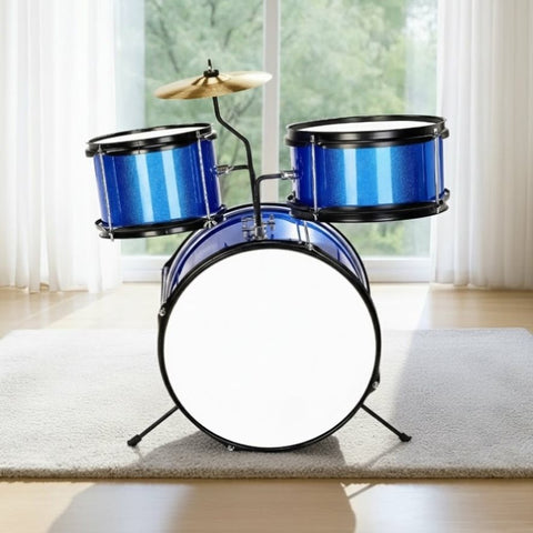 14"x10" 3-Pieces Junior Kids Drum Set Kit Pedal Drum Stick Wrench Drum Stool Dark blue 27761047