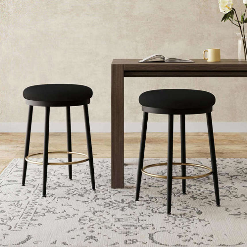 Stylish Design:The black round seat and metal legs create a modern and chic look that can enhance any interior decor. It's a fashionable addition to your living room, bedroom, or any other space. For example, it can be a statement piece that catches the eye and adds a touch of elegance.