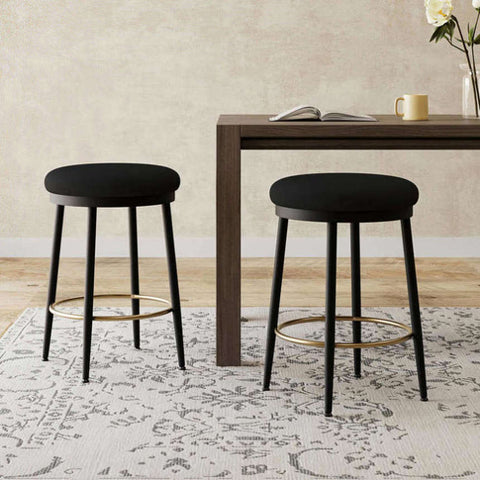 This backless bar stool comes with an upholstered seat for maximum comfort. Its round shape makes it an accessory you'll never want to stand up for.