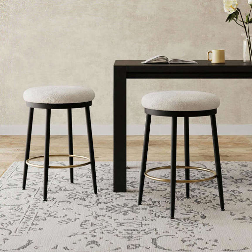 This backless bar stool comes with an upholstered seat for maximum comfort. Its round shape makes it an accessory you'll never want to stand up for.