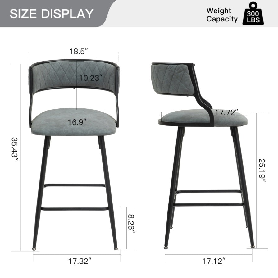 26'' Counter height bar stools PU cover kitchen island counter bar stool with black powder coating 15887980