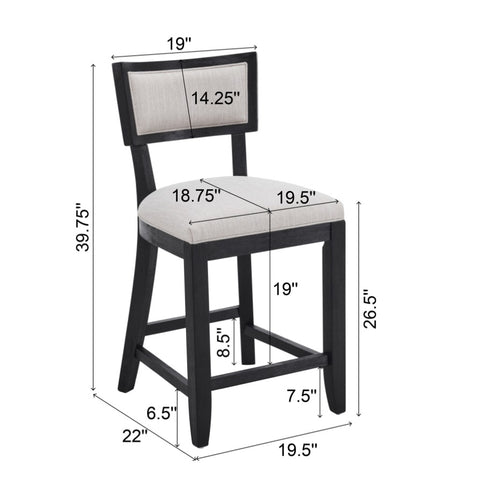 26.5" Counter Stools Set of 2, Upholstered Counter Height Bar Stools with Comfy Back, Solid Rubber 72643.00BGECHOC
