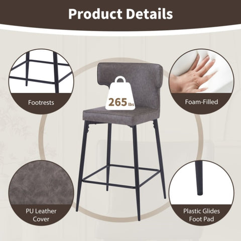 | Highlights | Metal Frame // Footrests // PU Leather Cover // Water-Resistant // Foam-Filled // 28inch Counter Height // Set of 2 // Plastic Glides Foot Pad // Curved Back like A Hug // Modern Style // For Kitchen Island/Bar Table // 3 Colors Available // 265lbs Weight Capcaity // Easy to Installation (10min/pc/person) |