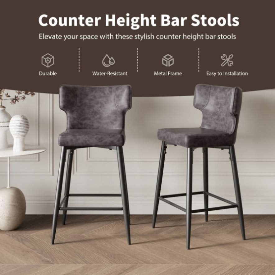 | Summary | Elevate your space with these stylish counter height bar stools! Featuring a sturdy metal frame and cozy curved backs that hug you, they’re perfect for kitchen islands or bar tables. Water-resistant PU leather and foam-filled seats ensure comfort, while easy installation makes them a breeze to set up. Available in three vibrant colors! |