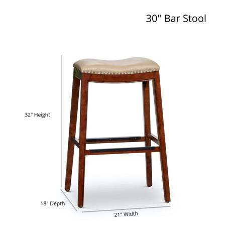 Bar Stool: 30 in H (32 in with cushion) x 20.25 in W x 17 in D