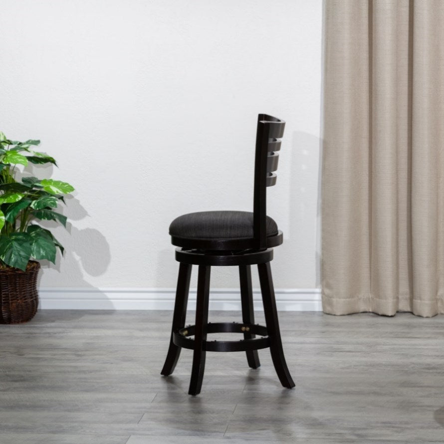 30" Bar Height 4-Slat Back Swivel Stool, Espresso, Charcoal Fabric