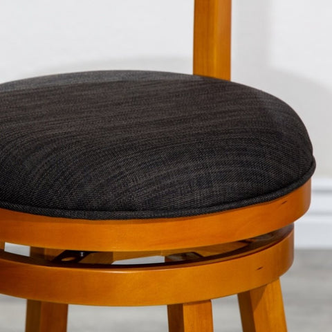 30" Bar Height 4-Slat Back Swivel Stool, Natural, Charcoal Fabric