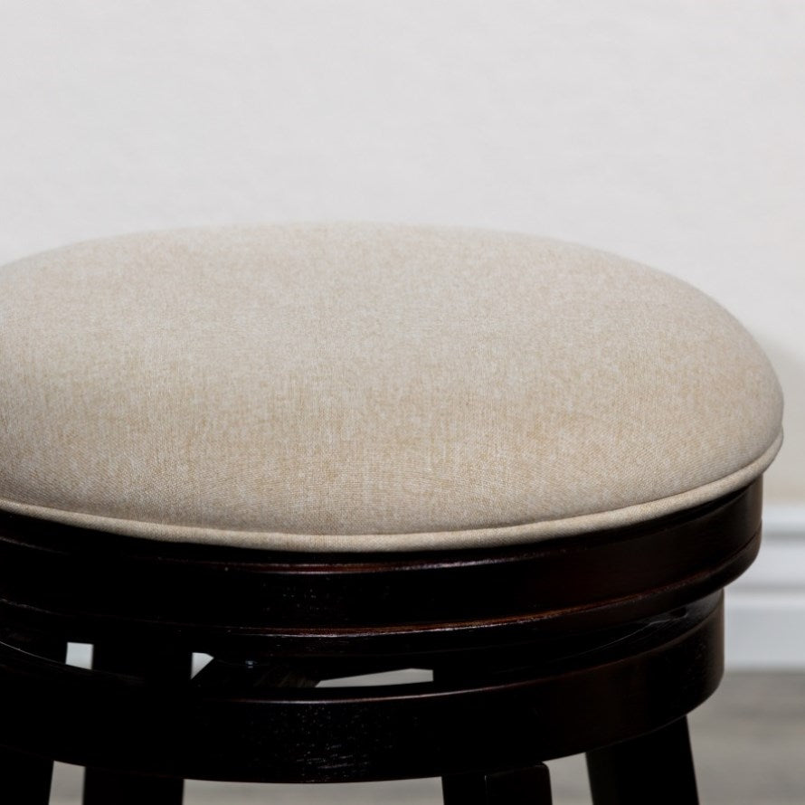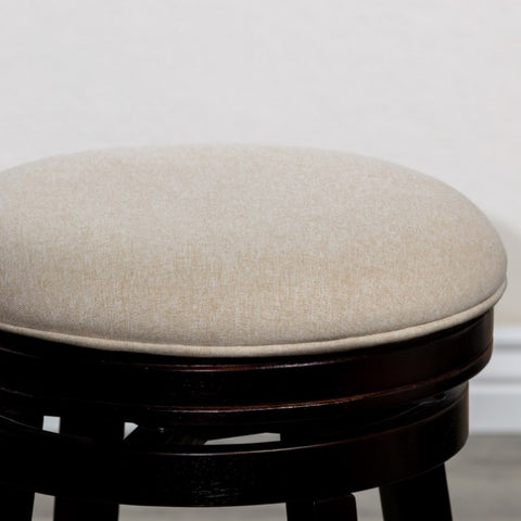 30" Bar Height Backless Swivel Stool, Espresso, Beige Fabric
