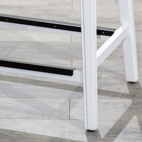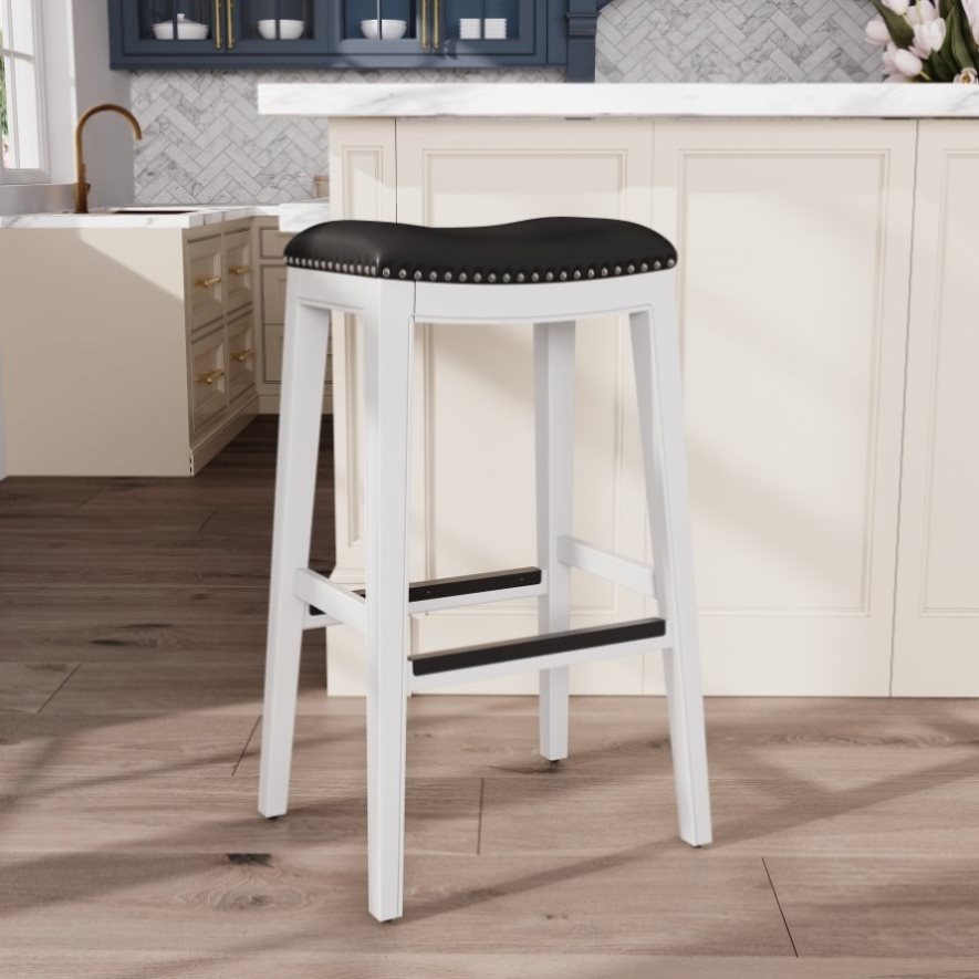 30" Bar Height Saddle Stool, White, Black Leather