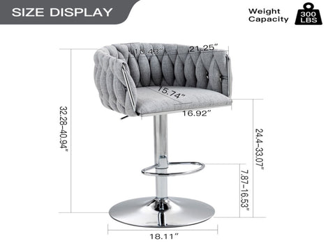 360° Fabric cover Swivel Bar Stools Set of 2, Adjustable Counter Height Bar Chairs with Woven Back & W2215P184994