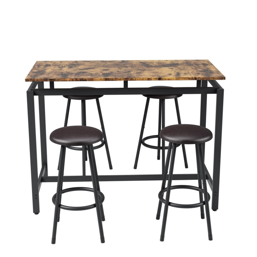 5-piece kitchen table set: Including 1 dining table and 4 stools, this complete table height dining set is perfect for enjoying delicious food at home with family or friends. The four stools are simple and clean. When you don't use them, you can easily put them under the dining table to save space in your room.