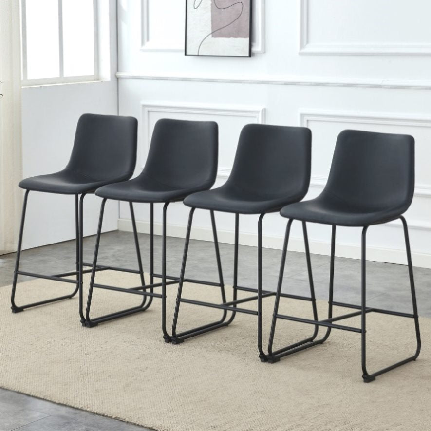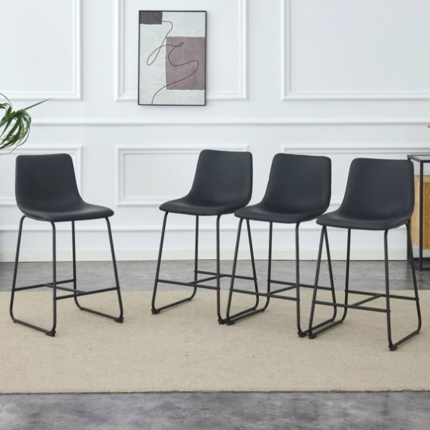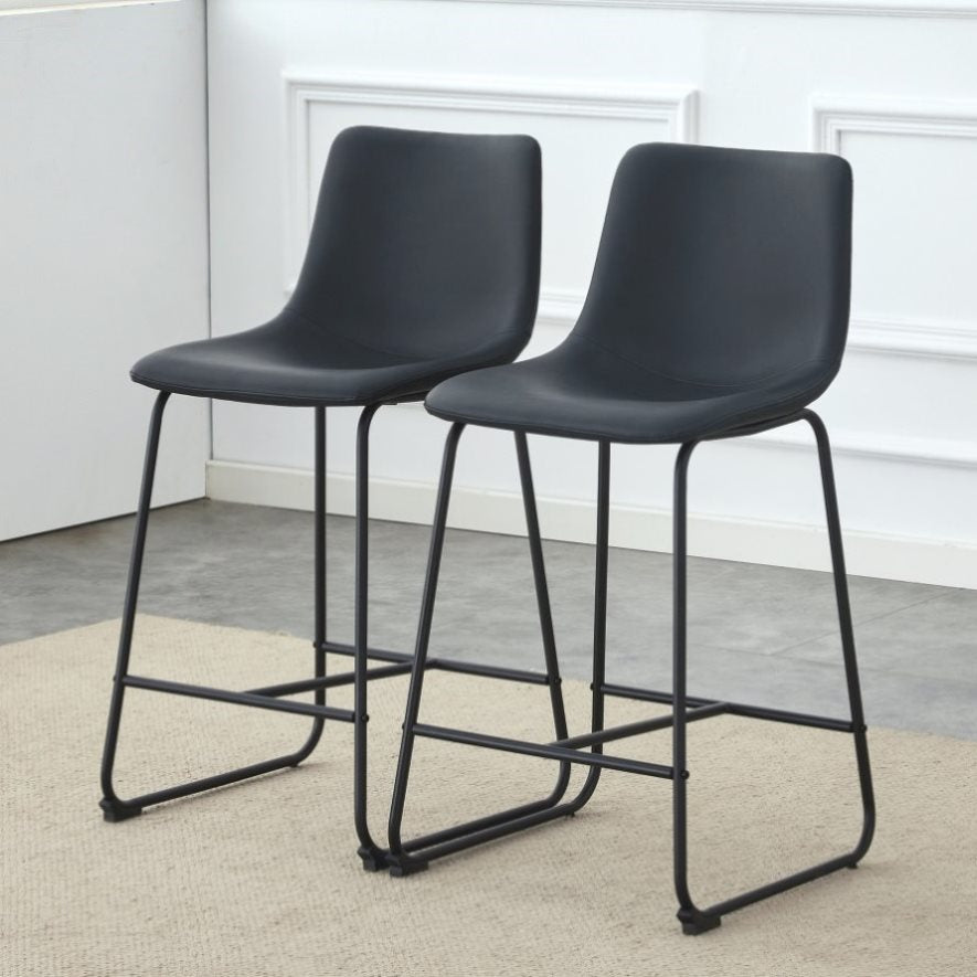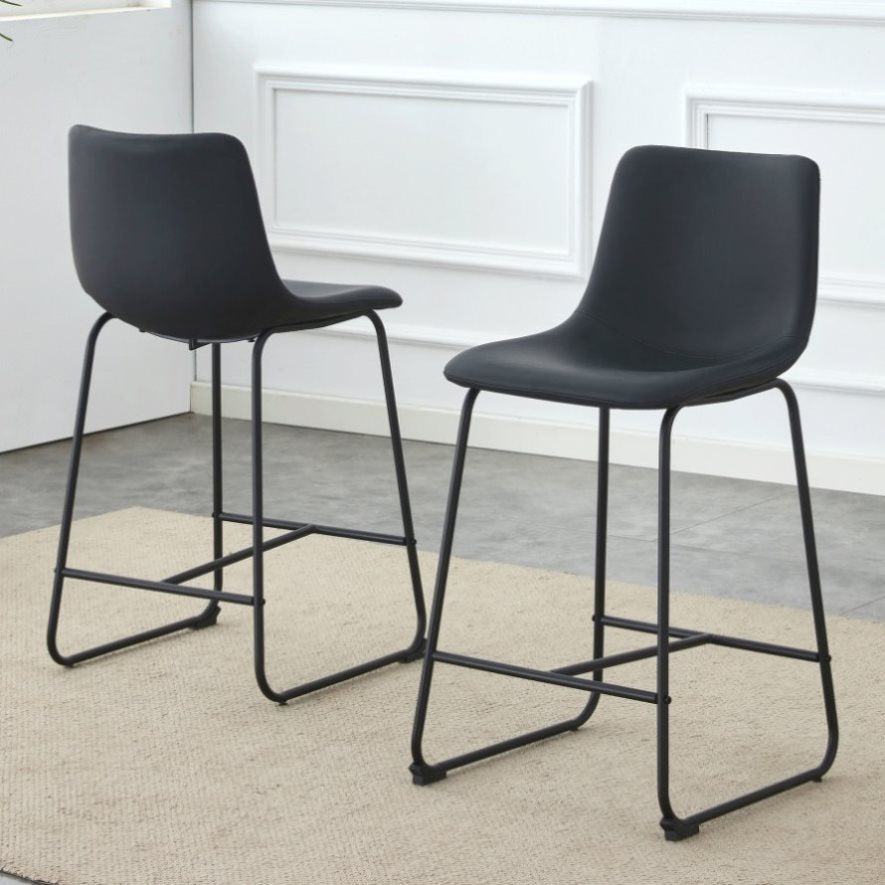 : This black bar stool made of PU material features a design with a strong sense of modernity, adding a fashionable touch to your bar or kitchen island.