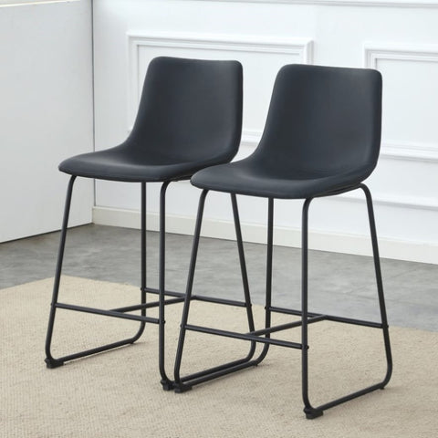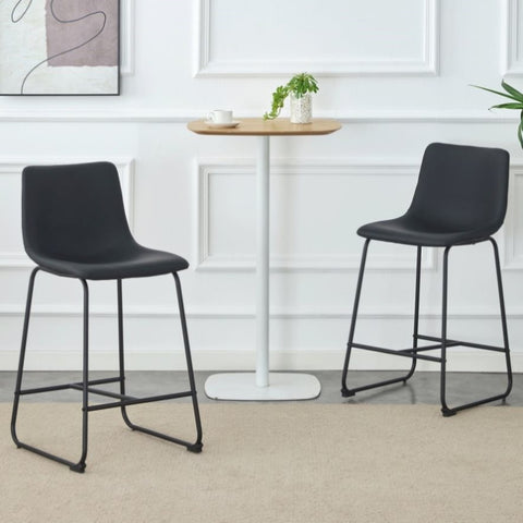 A set of 2 Modern Minimalist Style PU Material Bar Stools - Black, suitable for kitchen, bar, and W3226P279064
