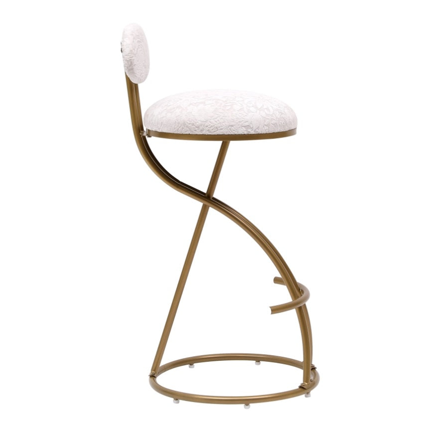 Unique Design: The S-shaped gold metal frame and white printed polyester upholstery make for a stylish addition to your home. The padded seat and backrest provide a comfortable seating experience.