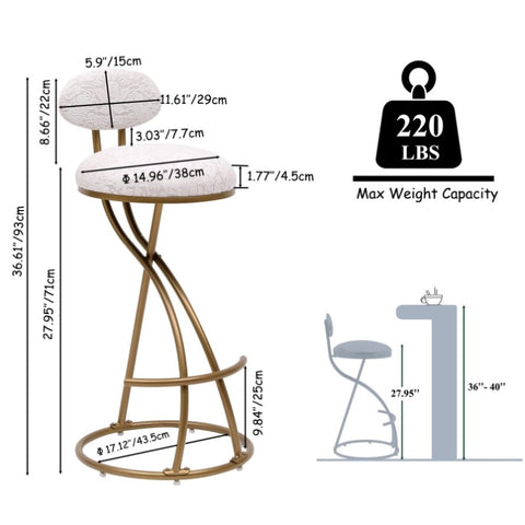 Perfect Size: Measuring at 14.96'' (38cm) in diameter, the bar stool provides ample space for most adults. The ergonomic backrest and footrest offer additional comfort for daily use.